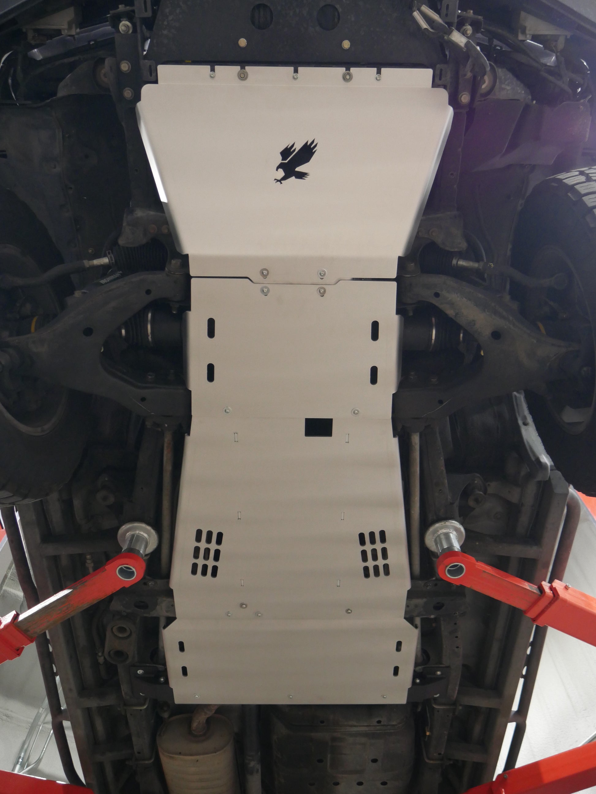 - 2-piece front, engine skid, transmission skid, transfer case skid